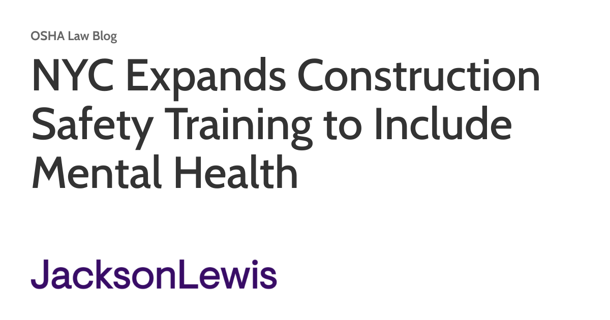 New York City recently enacted a local law to address growing mental health concerns within the construction industry, reflecting increased attention on suicide prevention and substance abuse. The new law amends the New York City Building Code to broaden requ…